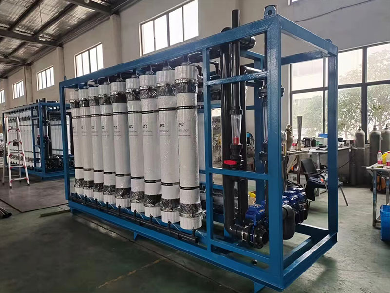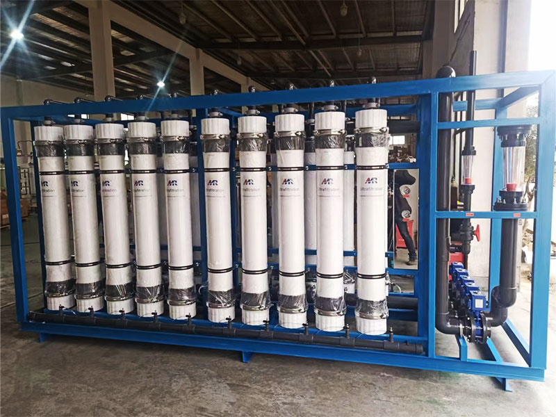 超滤水处理设备是以水的压力为推动力,通过超滤膜不同孔径分离出水中杂质的水处理设备。设备采用的工艺有:精密过滤器、袋式炭过滤器、中空纤维超滤、杀菌消毒等,可去除水中的胶体、化学有机物、重金属、细菌等大分子有机物。