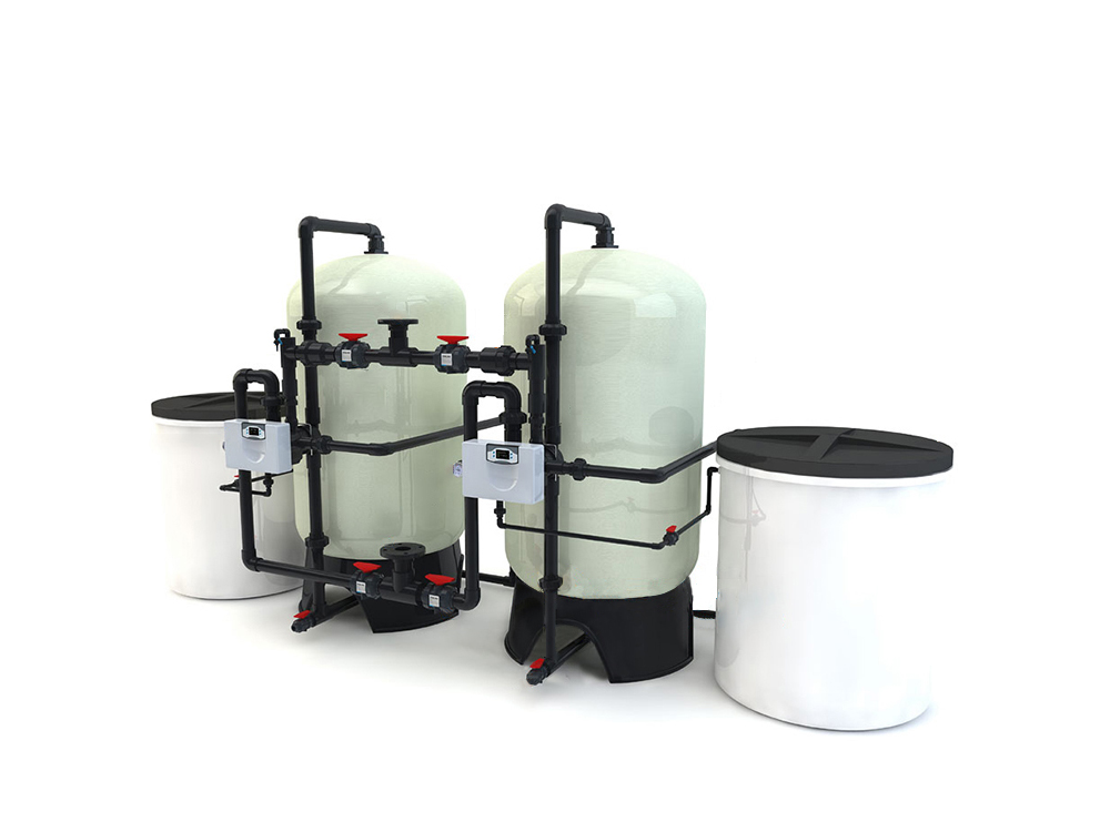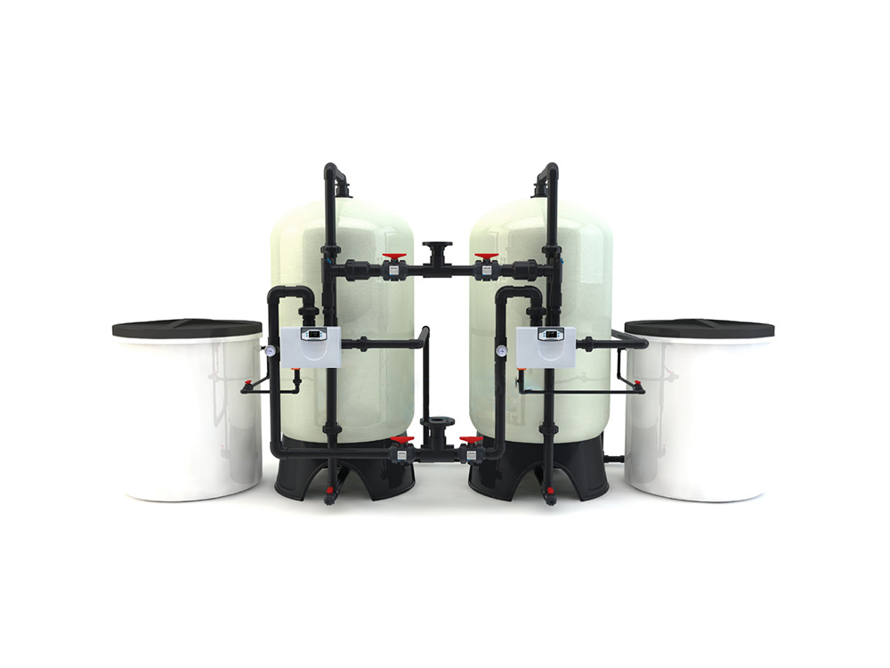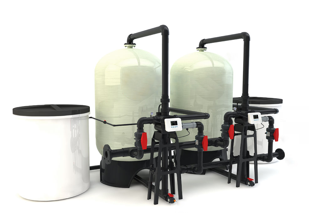 双阀双罐软化水系统:顾名思义即两套软化水系统并联安装,然后对两软化水系统的控制方式进行互锁,使两套软化水系统在不同的时间进行反洗、再生,从而达到不间断供水的目的。双阀双罐型软化水可用于工业锅炉的的供给水,也可用于空调的冷却水,还可以用于洗衣房的洗衣用水,还可以用于沐浴,在食品、酿酒行业中也得到广泛使用,也被用在化工行业等应用范围非常广泛。