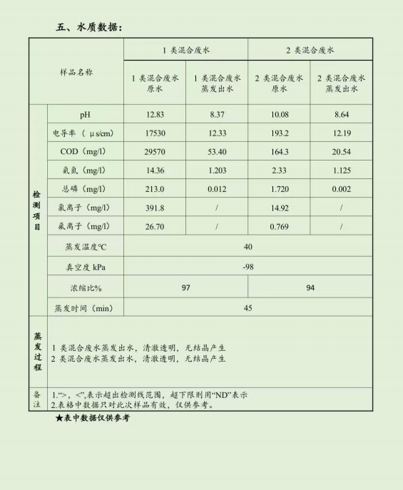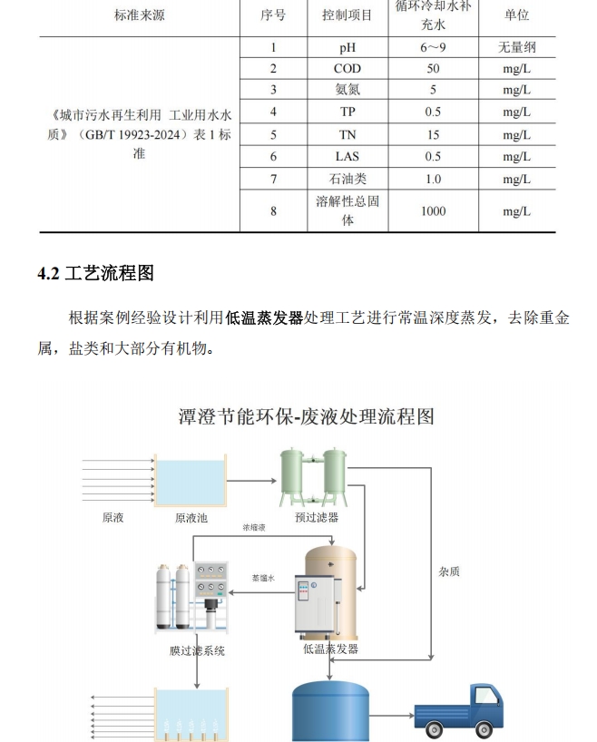 / detailed description本污水处理系统的污水主要生产加工过程中产生的废水,一共两种废水,起 重类别 1,药液水,进行低温蒸发。类别 2 废水暂时不做讨论。根据小试数据结 果与案例经验,推荐使用低温蒸发浓缩系统,后期蒸发设备使用过程中要注意定 期清洗维护,以避免过多沉淀物附着于盘管影响换热,降低蒸发效率。小试与中 试机器数据会存在些许误差,蒸发后端建议增加一套膜过滤系统以保障出水达 标。 根据业主估算,按照每天处理量≥5000L 设计,污水站年运行 300 天,每天 运行 20-24 小时运行,设计处理能力为 5000L/d。